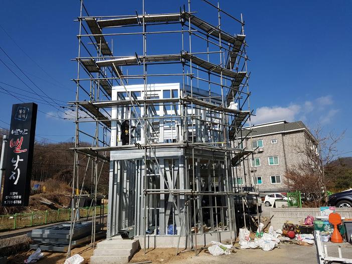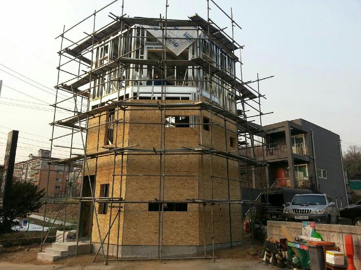 3층 구조 보강 및 우드벽체 / 외부 합판 작업