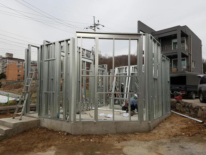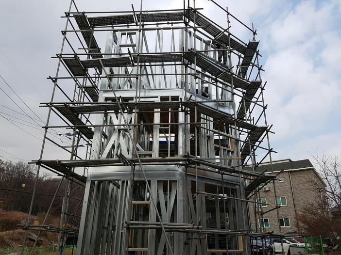 3층 스터드골조, 트러스 크레인 작업 및 자재입고