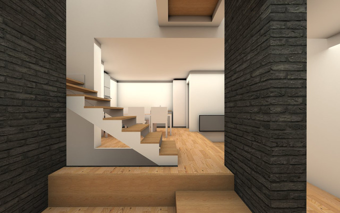 3층: 두개의 레벨공간이 +500단차로 구분 (2,3층 수직거리 최소화): 단높이 167, 3개 계단이용