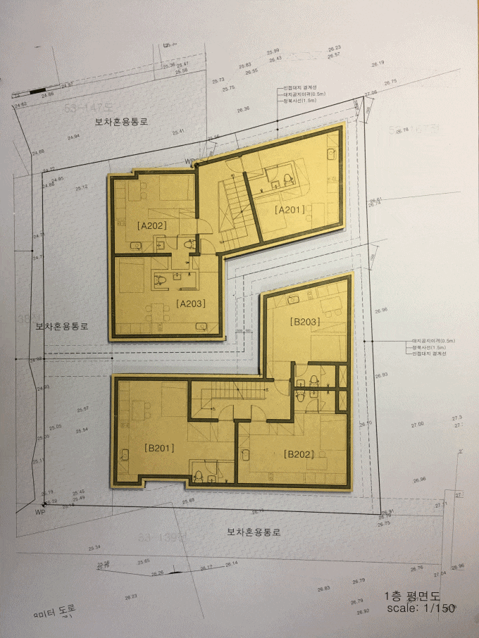 건폐율 60% 용적률 150% / 정북사선 적용