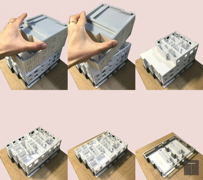 주어진 대지환경과 건축시장을 반영한 임대건물을 제안한다. 6개를 개별분양하는 방식이 아니라, 주인세대와 임대세대가 하나의 건물로 묶인 건축물을 제안한다. (일반적인 다세대로 풀어서는 답이 안나온다. 한정적인 공간의 크기와 공사비, 결론적으로는 사업성이 안 나온다. 그래서 어쩌면 이곳만의 특수한 상황 정리가 필요했다.)