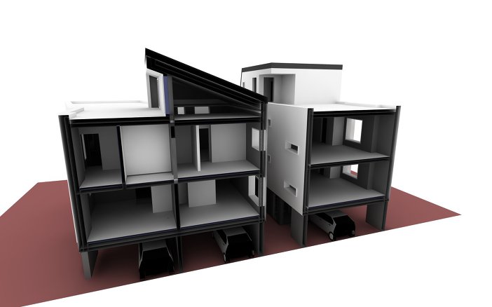주어진 대지환경과 건축시장을 반영한 임대건물을 제안한다. 6개를 개별분양하는 방식이 아니라, 주인세대와 임대세대가 하나의 건물로 묶인 건축물을 제안한다. (일반적인 다세대로 풀어서는 답이 안나온다. 한정적인 공간의 크기와 공사비, 결론적으로는 사업성이 안 나온다. 그래서 어쩌면 이곳만의 특수한 상황 정리가 필요했다.)
