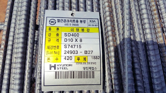 *본 현장은 고강도철근 SD400제품을 사용하고 있다.