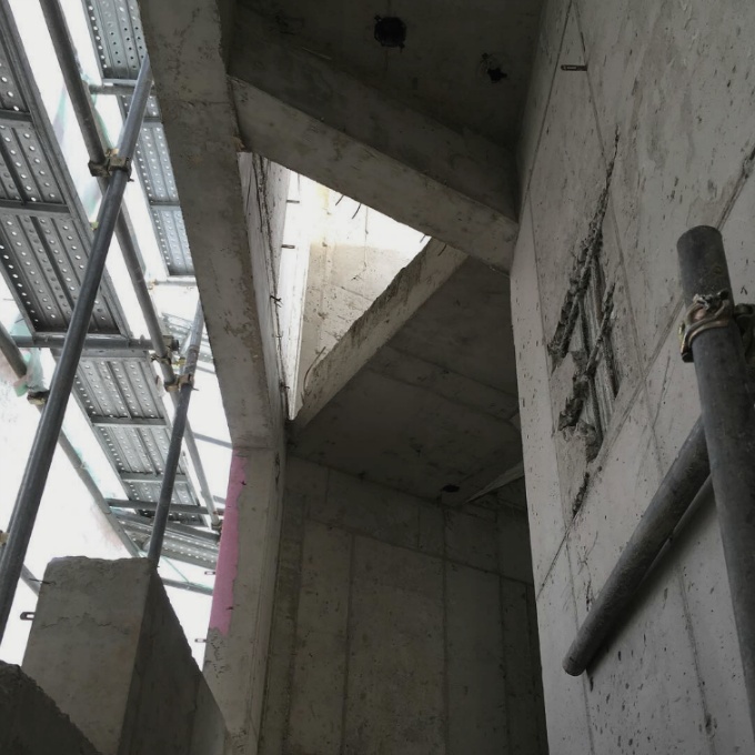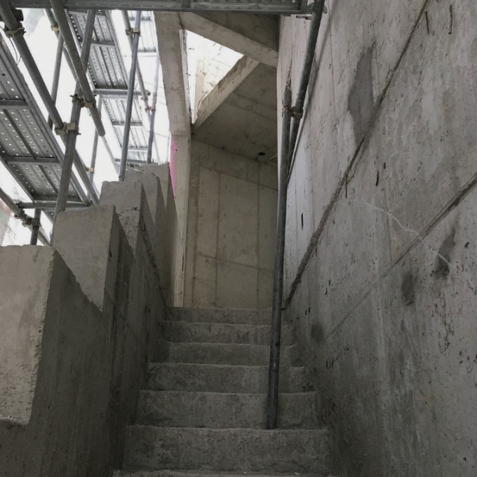 - 노출 콘크리트 물성과 계단의 형상을 외부로 자연스럽게 드러나는 디자인을 위해 큐블럭 재료 선정 및 입면 디자인