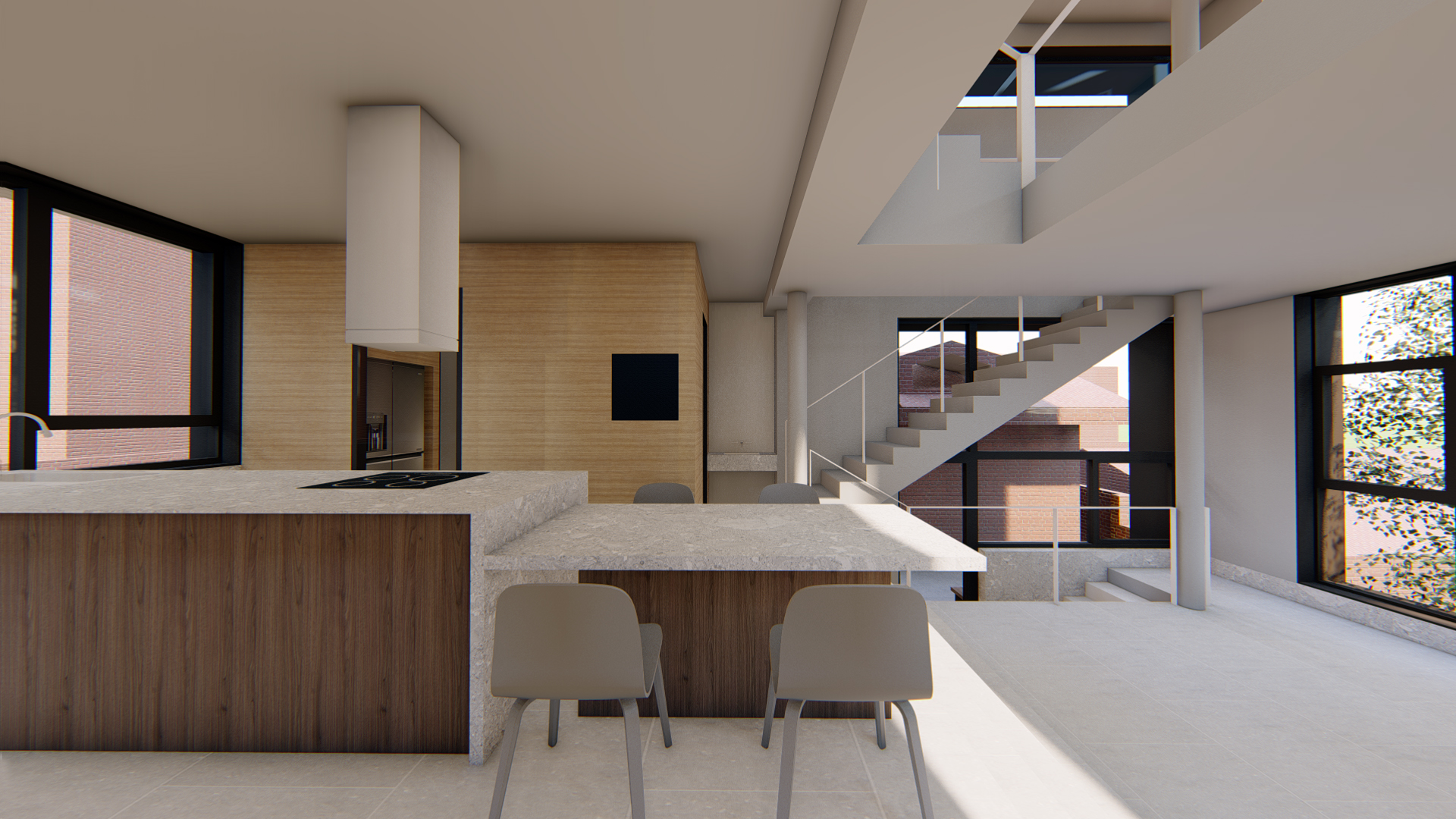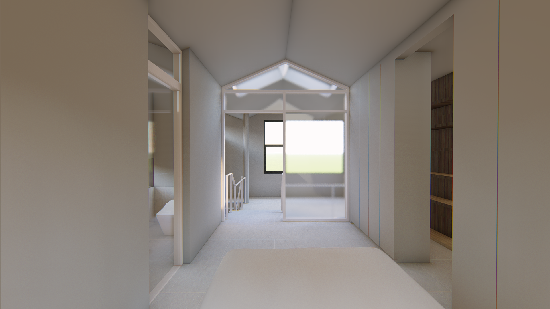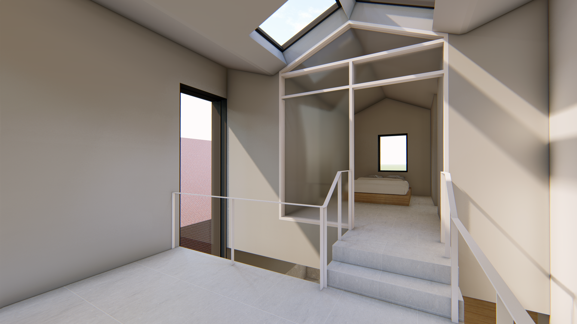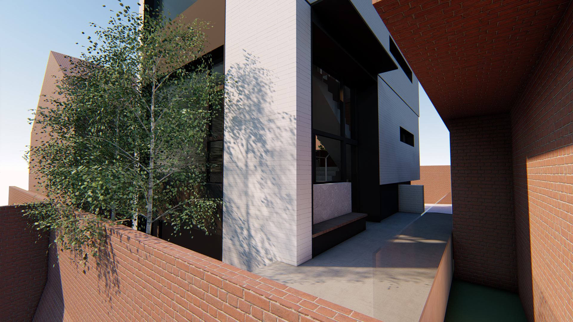 스플릿레벨로 구성된 내부 프로그램과 별개와 외관 디자인은 두가지 방향에서 접근합니다. 도시적 맥락을 연결하는 모던한 주택 이미지와 기존건물 및 이웃한 건물의 박공지붕의 풍경을 연속하는 코지한 주택의 이미지 입니다.