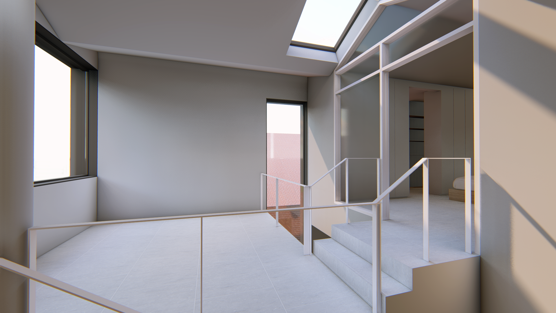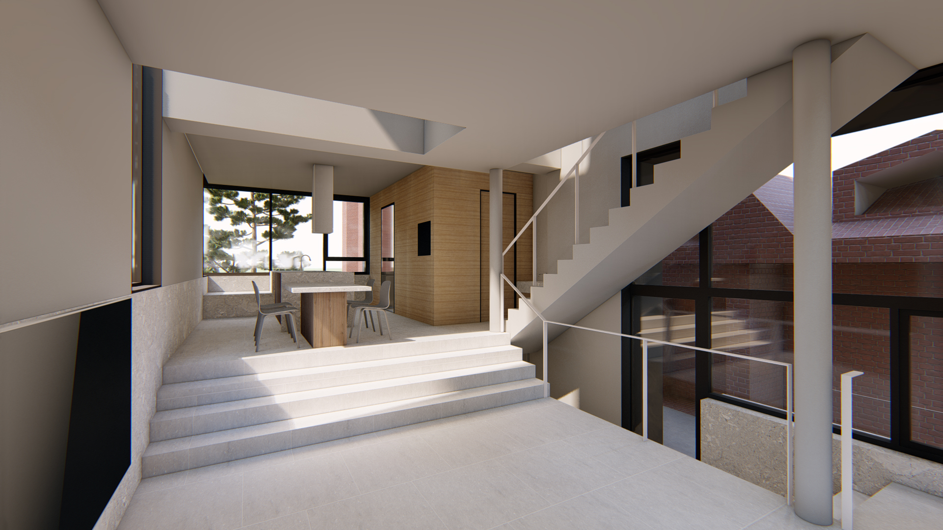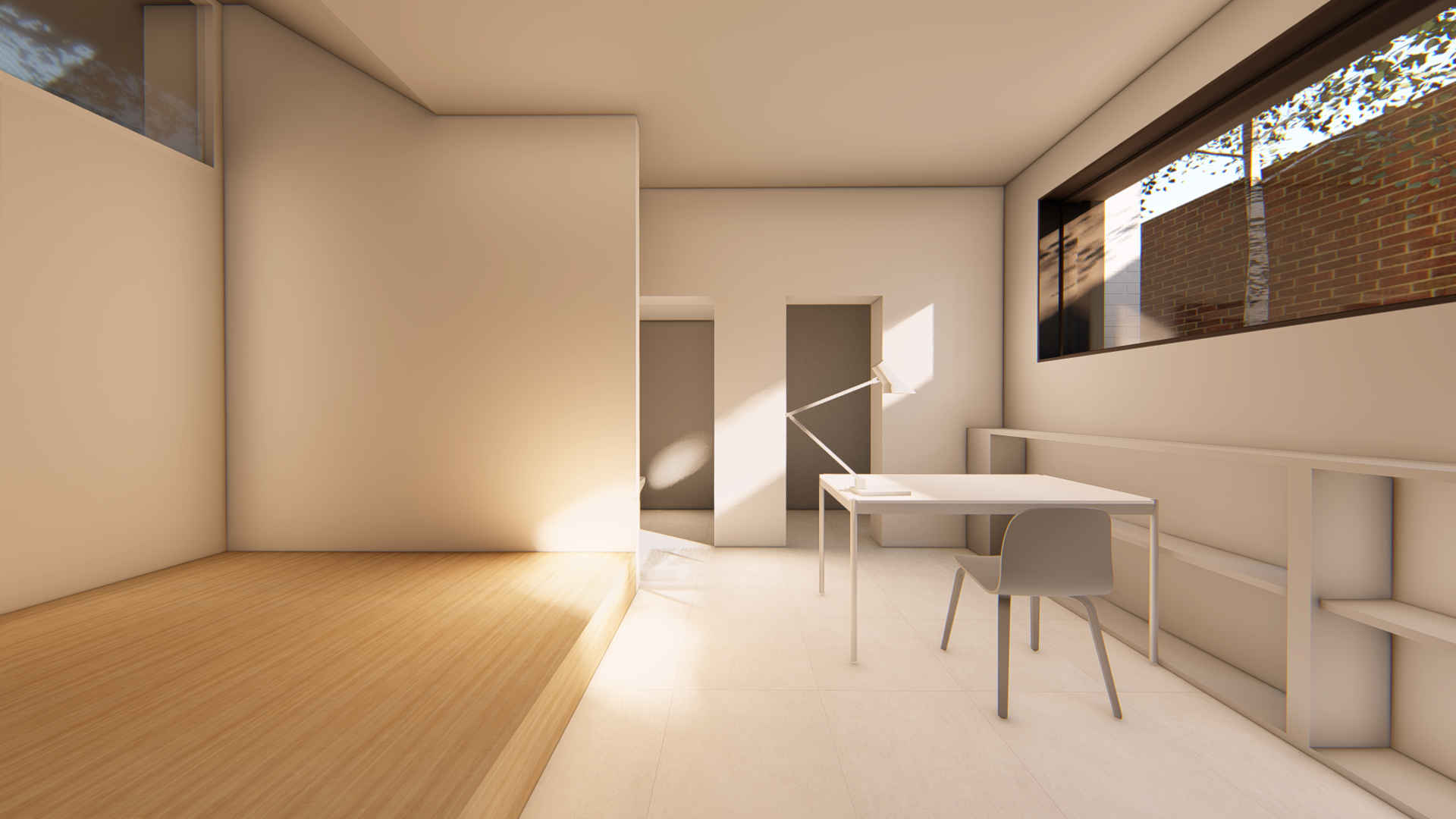 지하공간은 남편을 위한 공간으로 작업실과 서재를 겸하는 스튜디오형(오픈형)으로 시작합니다. 1층은 침실과 거실공간으로 2층은 주방,식당 그리고 주변 풍경을 담을 수 있는 데크로 구성합니다.