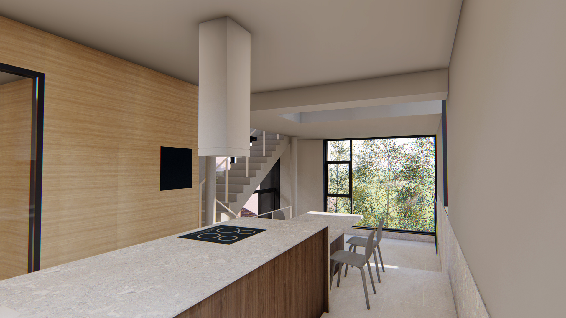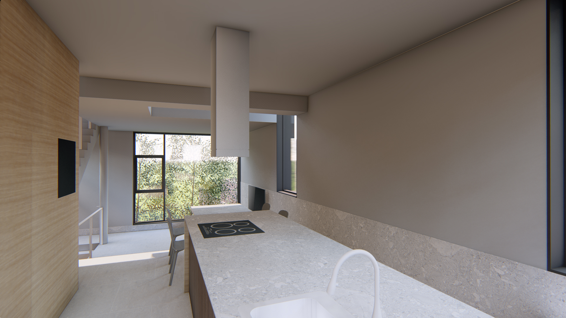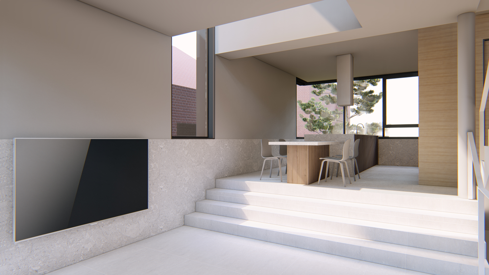 지하공간은 남편을 위한 공간으로 작업실과 서재를 겸하는 스튜디오형(오픈형)으로 시작합니다. 1층은 침실과 거실공간으로 2층은 주방,식당 그리고 주변 풍경을 담을 수 있는 데크로 구성합니다.