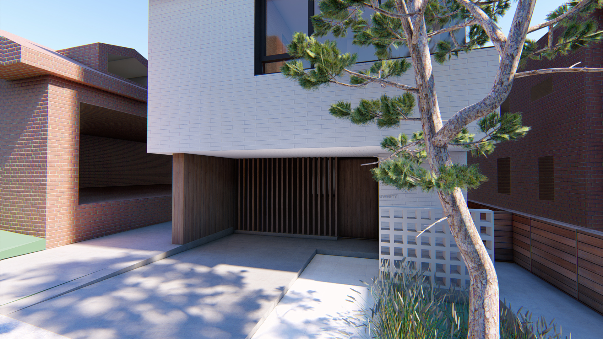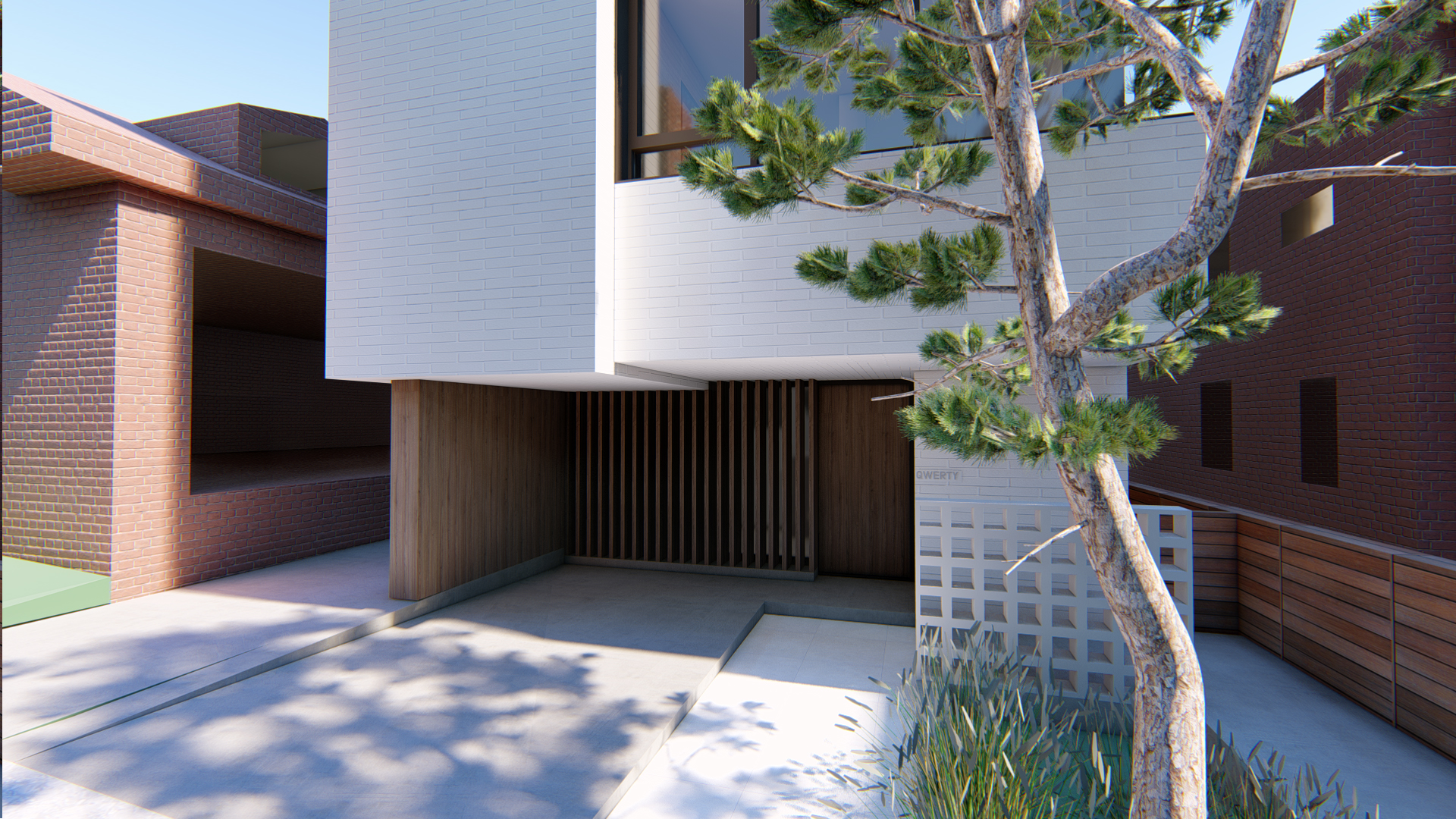 1. 기본 모듈형태로 기존주택과 신축건물의 진출입동선을 하나로 사용합니다. 6개의 내부 모듈을 자유롭게 사용할 수 있습니다. 지하를 위한 선큰은 공간 깊숙히 자리합니다.