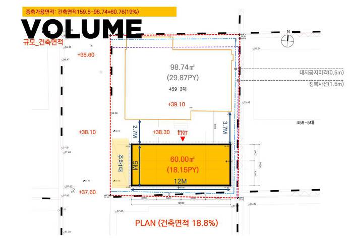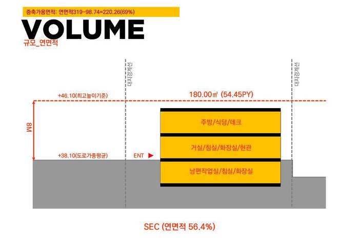 제 1종 전용주거지역의 제한사항과 기존건물로 부터 증축되는 설계인 만큼 여유 있는 공간할애는 어렵지만 부부를 위한 생활공간은 충실히 담을 예정입니다.