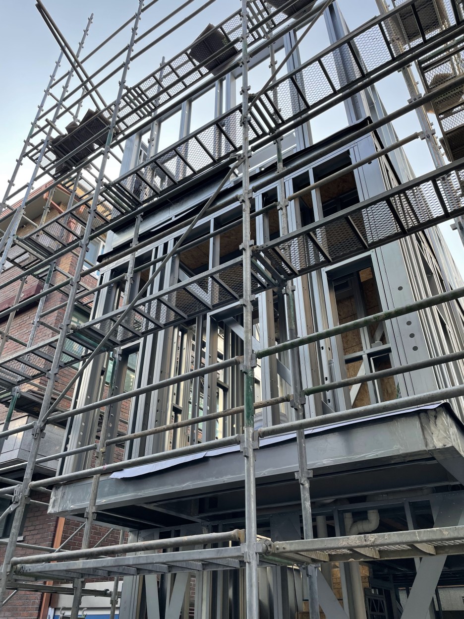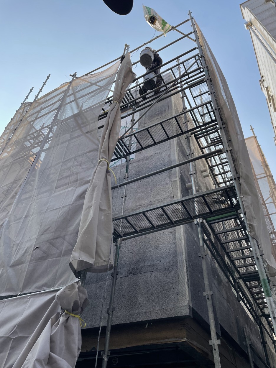 협소한 대지 위에 구축되야 하는 시공의 어려움을 극복하기 위한 방법론으로 이번 작업은 의미가 있습니다. 공장에서 사전제작(3차원 모델링으로 부재를 설계, 제작)된 부재를 현장 조립으로 이루어지는 시공과정은 습식공사(철근콘크리트 공사)의 단점을 보완합니다.