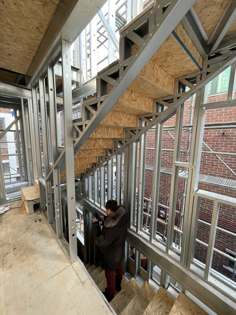 습식공사, 콘크리트 공사를 대체하는 스틸하우스 공사; 콜드폼시스템(CFS)를 적용한 면목동 협소주택의 시공과정입니다.
