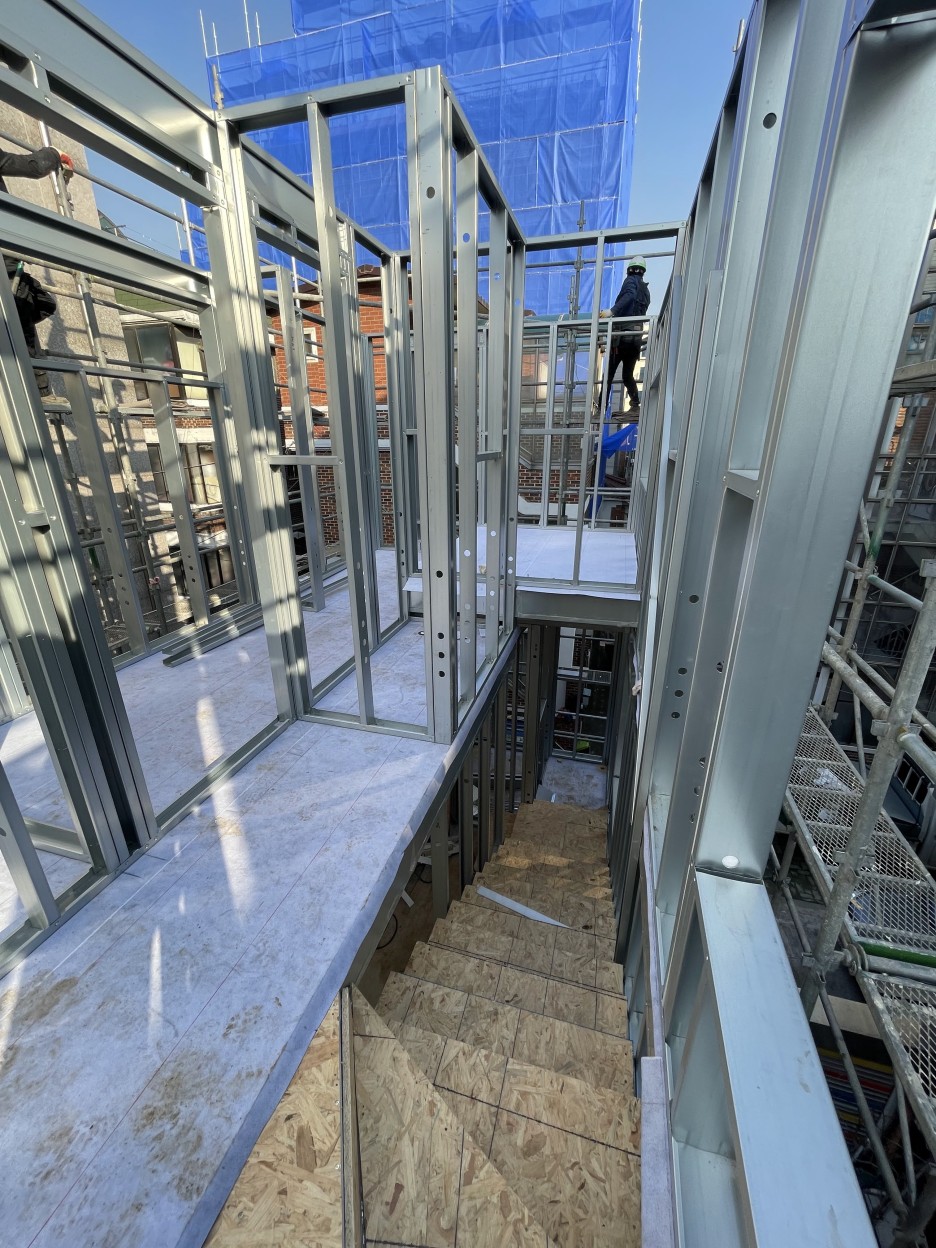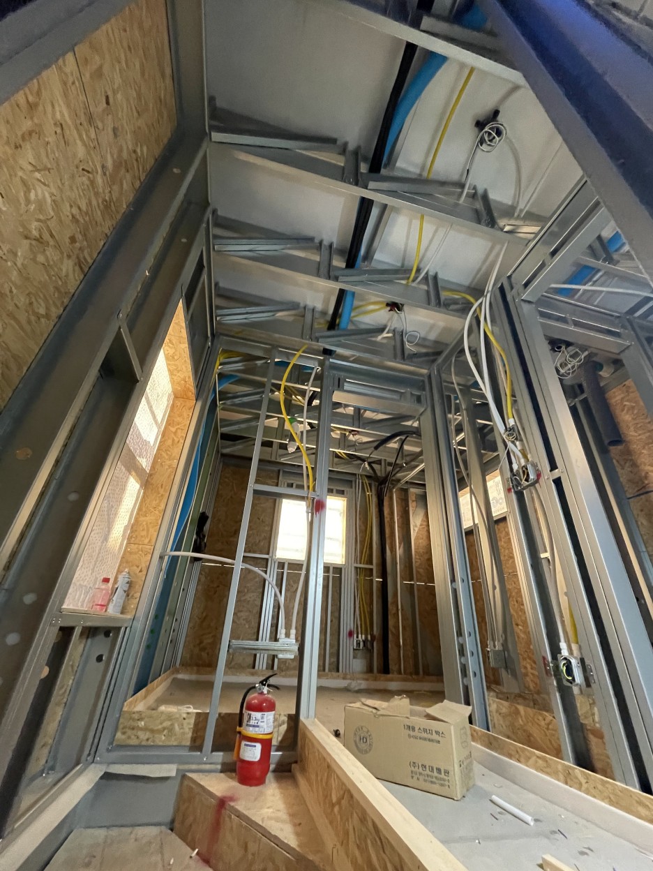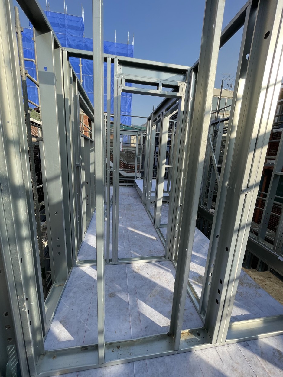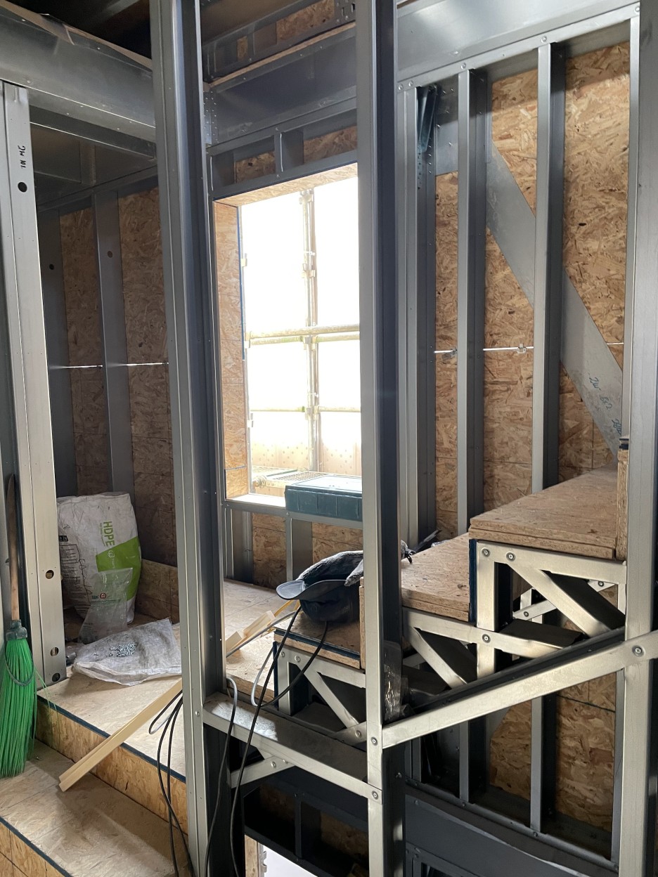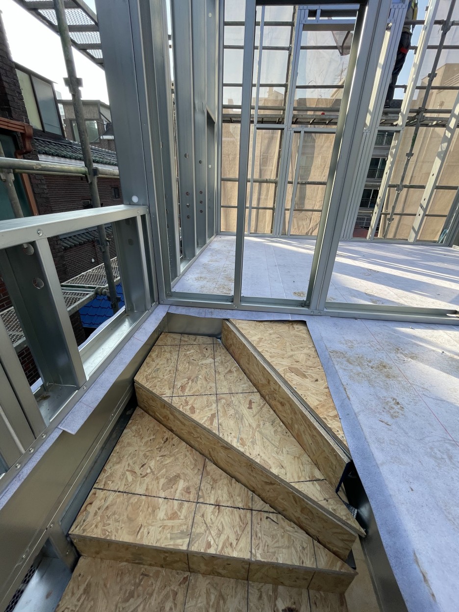 면목동협소주택의 특이점 중 하나는 구도심, 협소한 대지 위에 유연하게 적용 할 수 있는 스틸하우스 구조입니다.