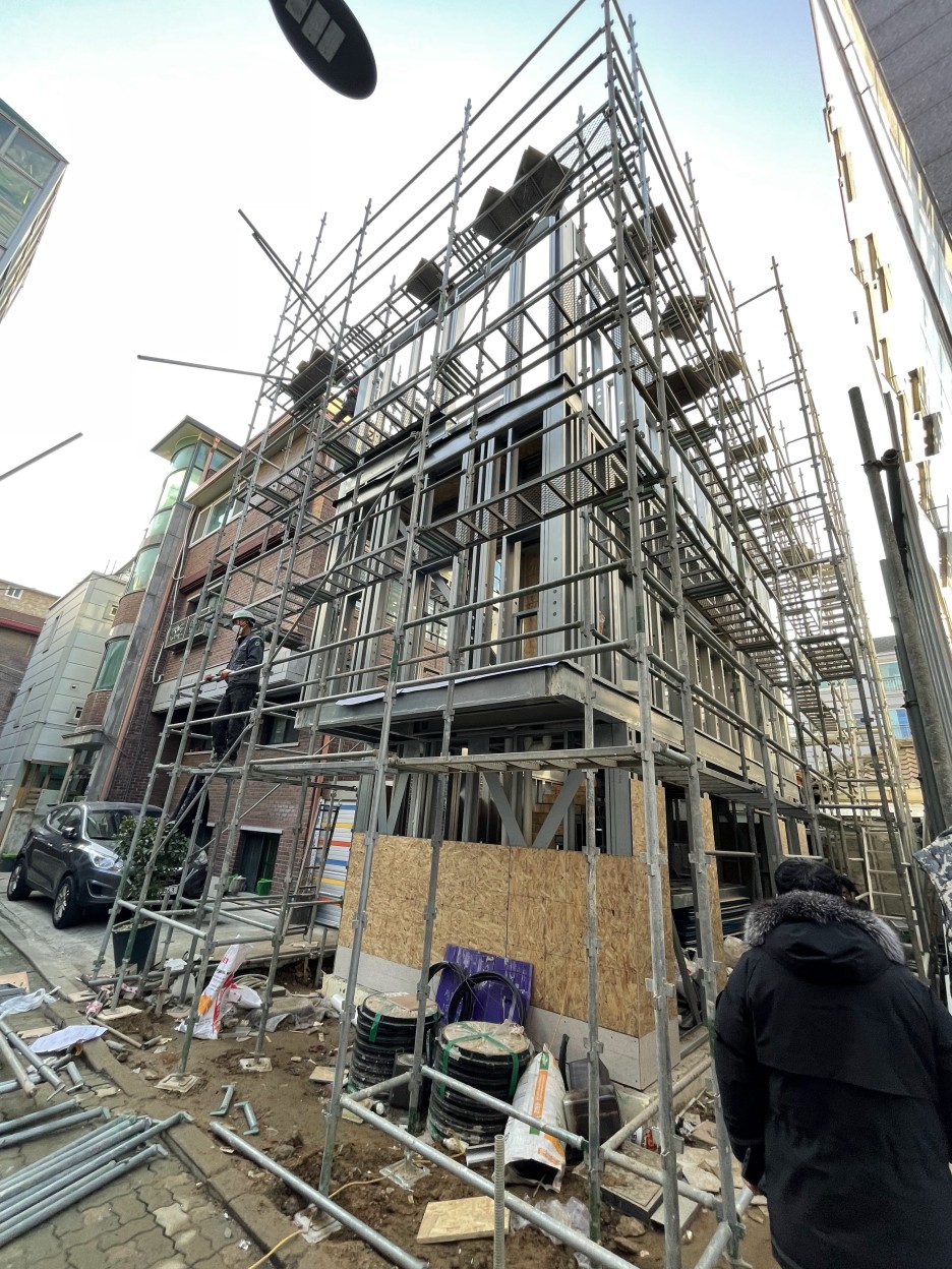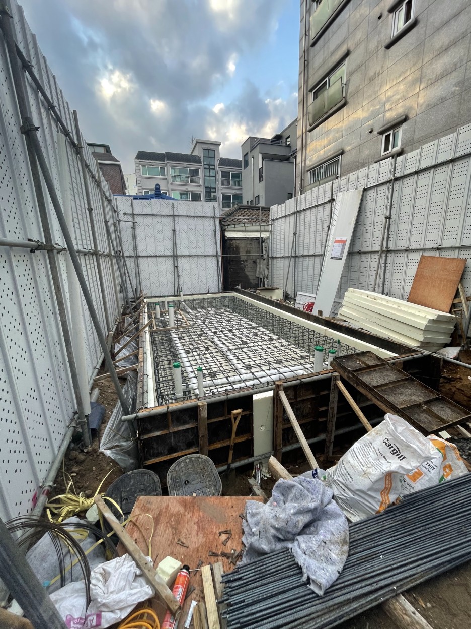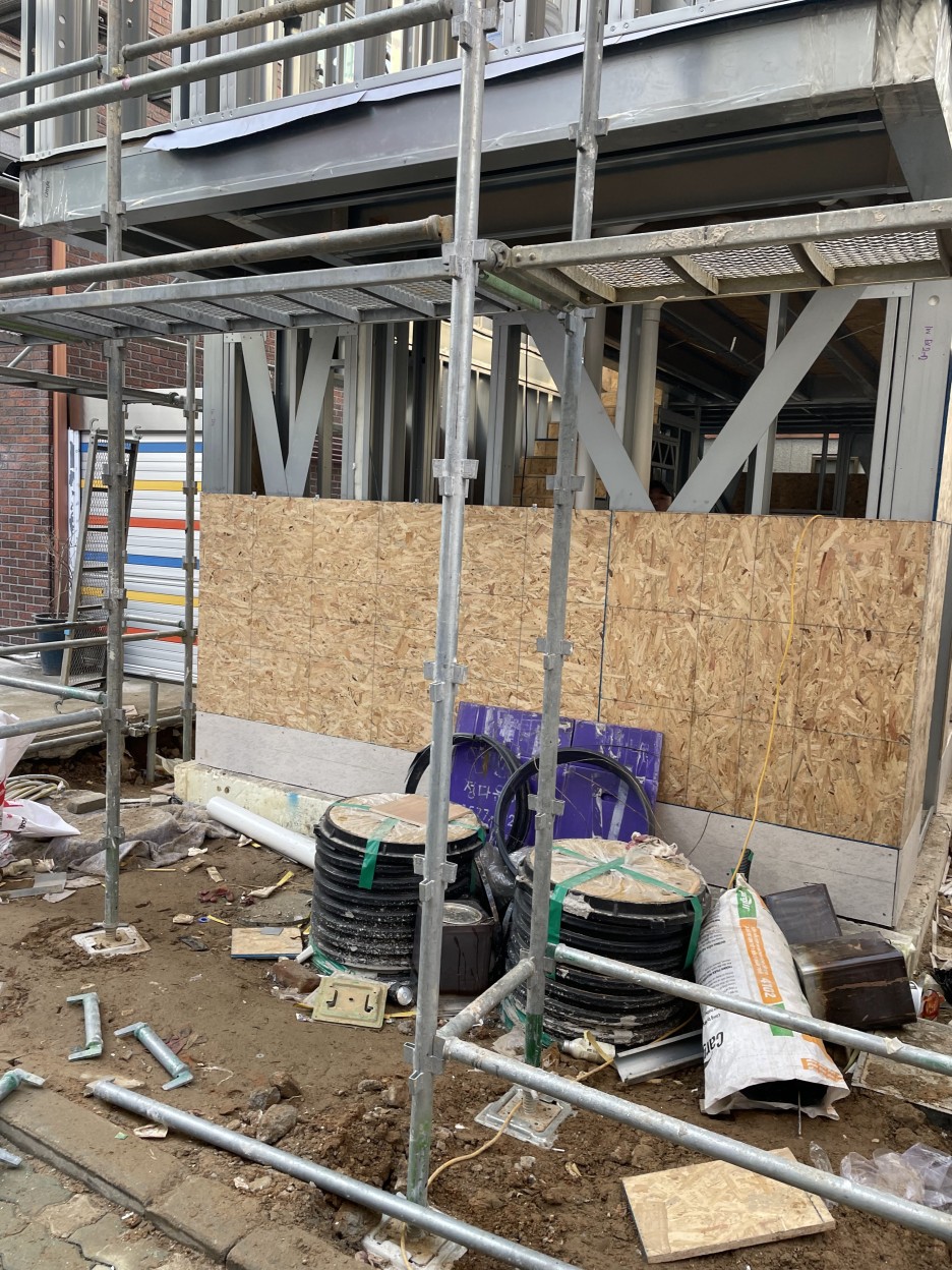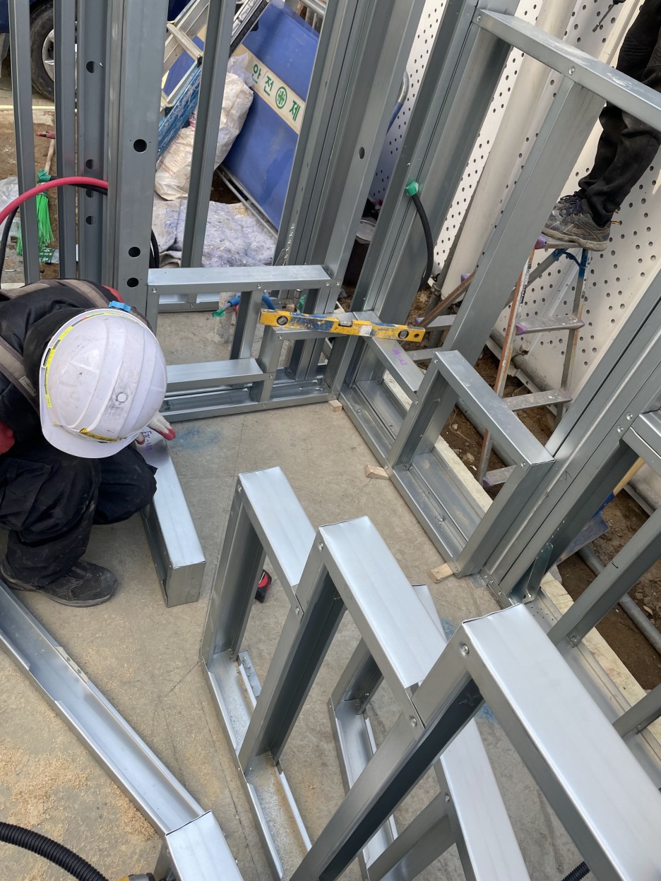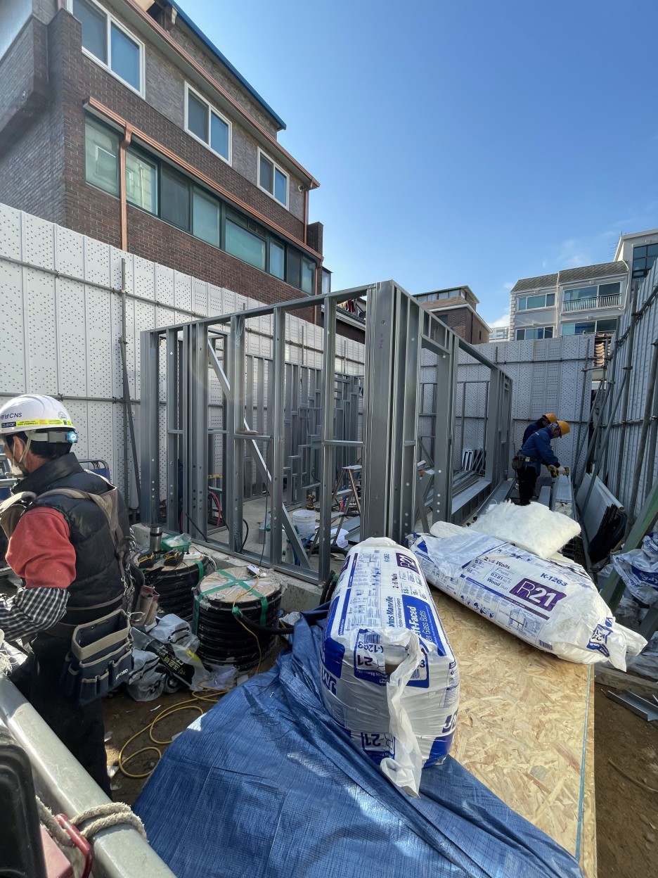 습식공사, 콘크리트 공사를 대체하는 스틸하우스 공사; 콜드폼시스템(CFS)를 적용한 면목동 협소주택의 시공과정입니다.
