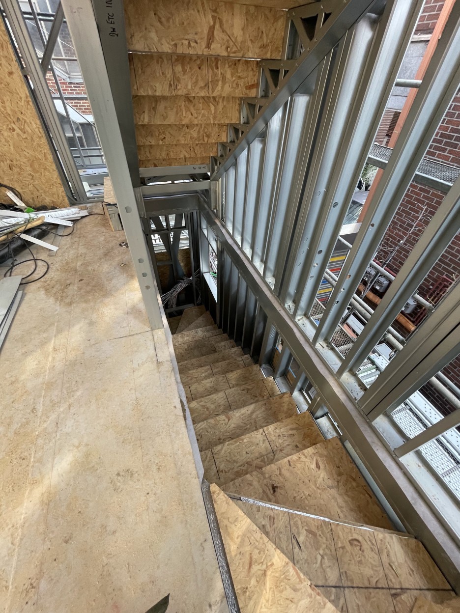 협소한 대지 위에 구축되야 하는 시공의 어려움을 극복하기 위한 방법론으로 이번 작업은 의미가 있습니다. 공장에서 사전제작(3차원 모델링으로 부재를 설계, 제작)된 부재를 현장 조립으로 이루어지는 시공과정은 습식공사(철근콘크리트 공사)의 단점을 보완합니다.