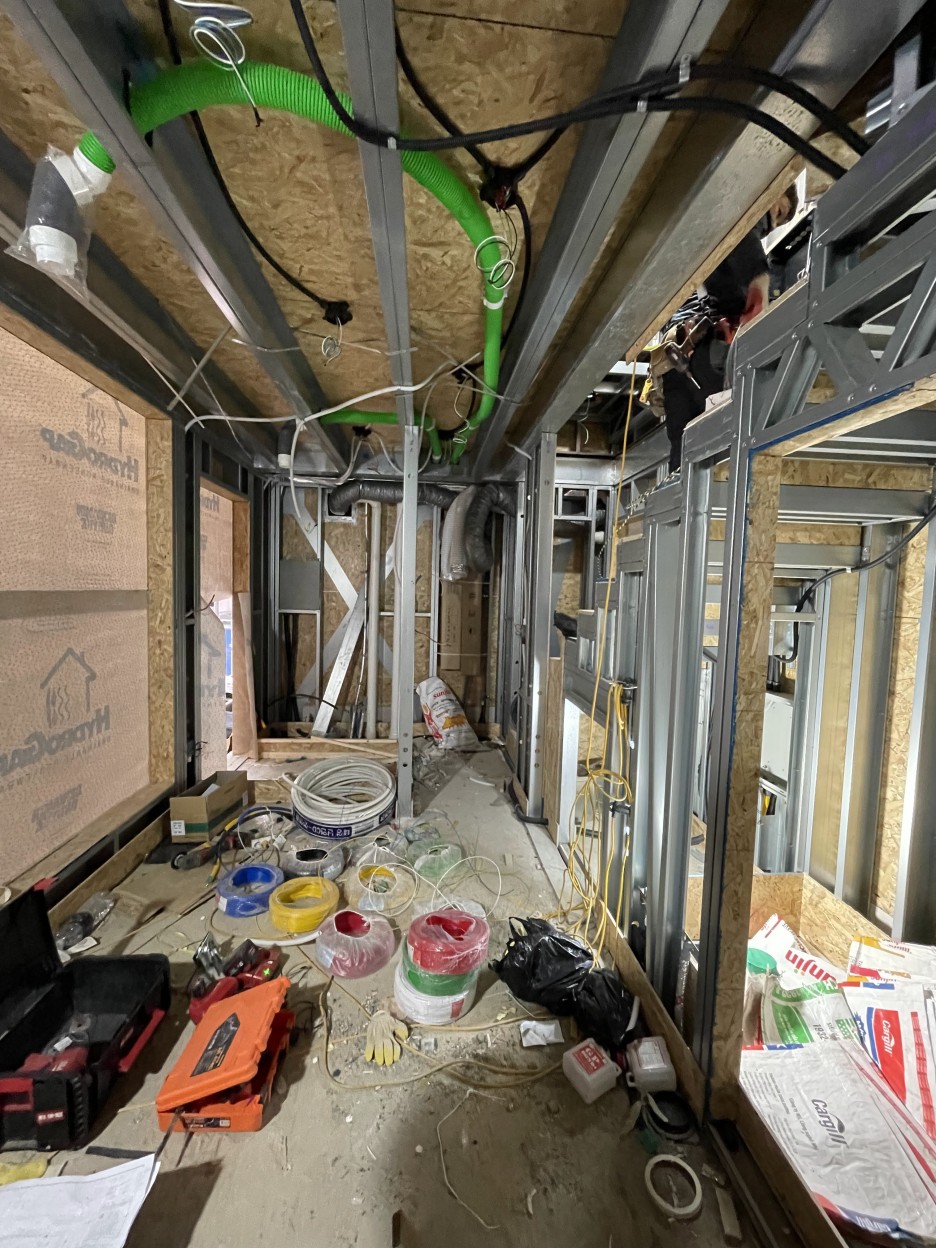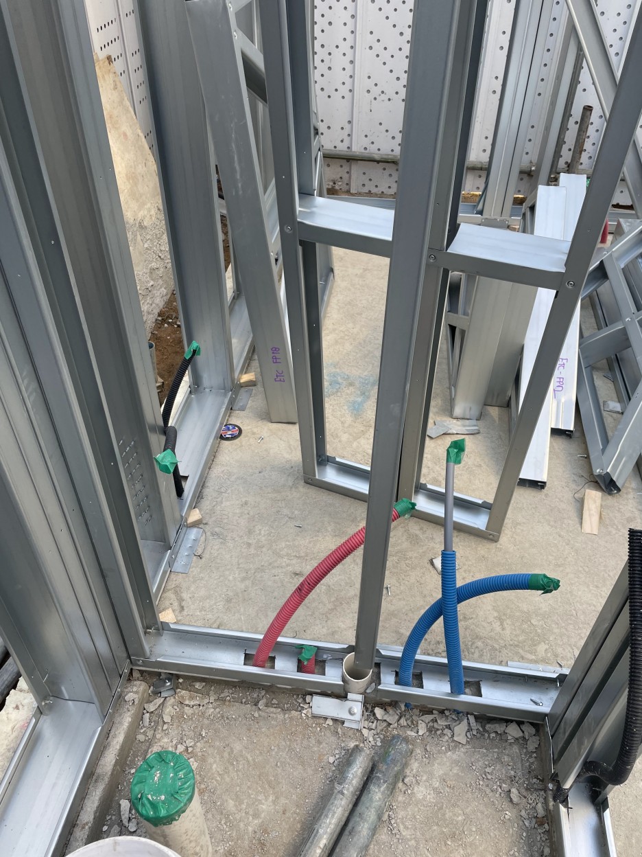 CFS(스틸하우스)의 장점 중 하나는 공정을 분리하여 운영이 가능하다. 습식공사의 경우, 철근콘크리트를 타설하는 공정 중에 기계분야와 전기분야가 함께 들어와서 작업을 해야 한다. 그만큼 복잡하고 관리하기가 힘들다. 더러는 각 기계도면과 전기도면이 있는데도 불구하고, 작업자가 편한대로 시공하기도 한다. (작은 현장들의 한계가 아닐까?)