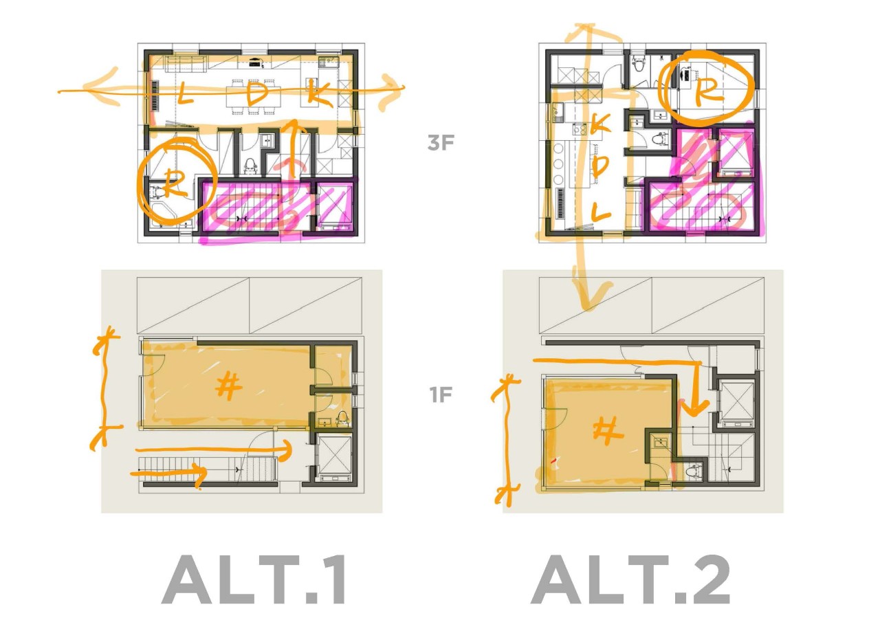 1. PLAN은 ALT2방향이 긍정적이나, 2층 접근에 대한 고민이 됨