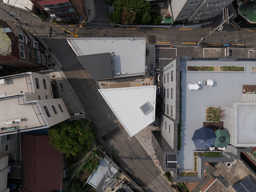 Suyu-dong, one of Seoul’s historic urban districts, offers a blend of nostalgia and density with its maze of aged buildings. Amid this complexity, a neglected triangular plot, formerly used as a shared parking lot, has been reimagined into a contemporary living space for a newlywed couple.
