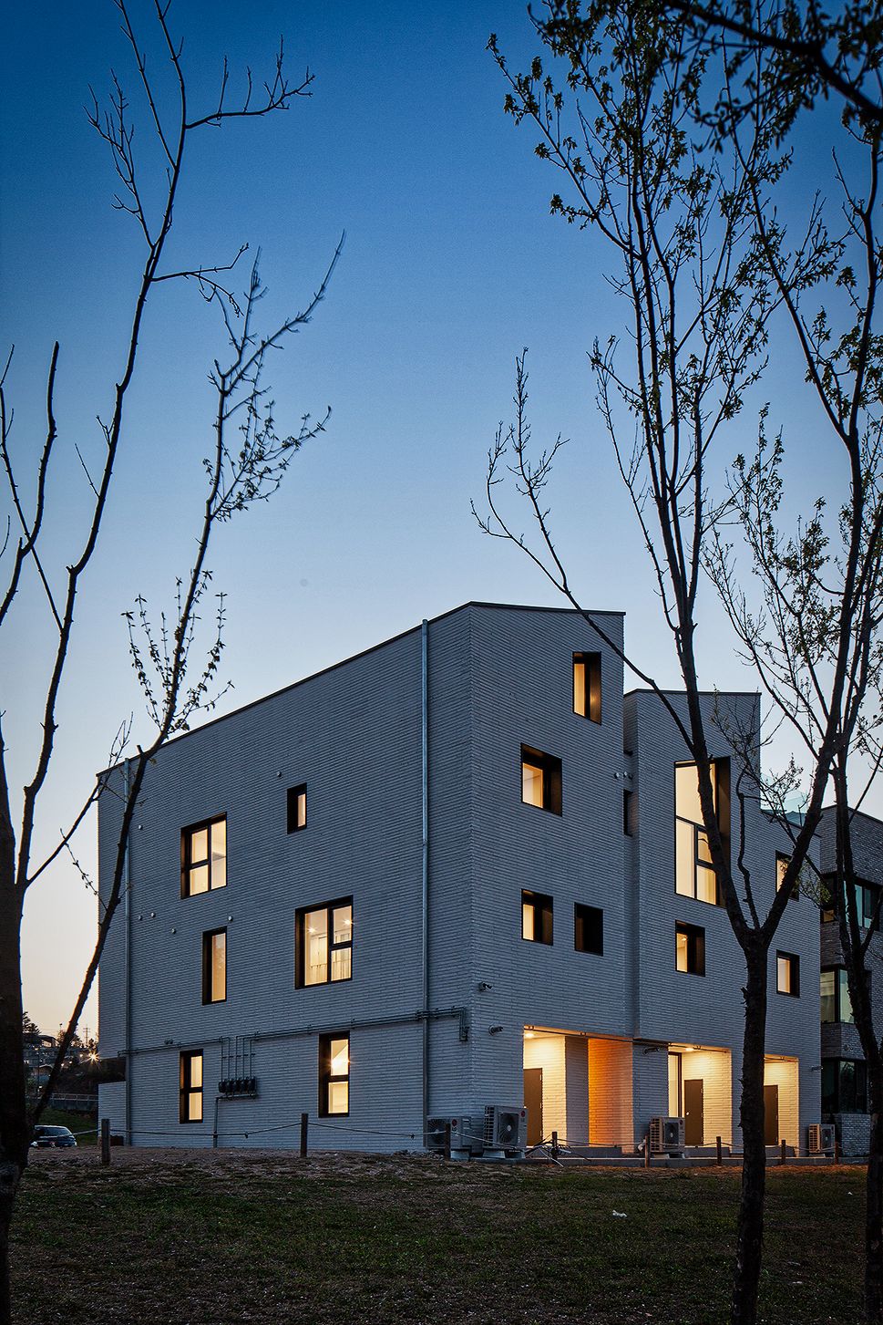 2층 캔틸레버구조와 전면 가벽으로 형성된 포치공간은 거주자에게 심리적 안정감과 물리적 여유공간을 제공 합니다. 자전거, 유모차 또는 외부활동에 필요한 다양한 물품들의 여유공간 또한 생깁니다. 분리된 생활동선, 각 가구의 분리된 전이공간을 통해 독립된 거주공간은 가까워 집니다.