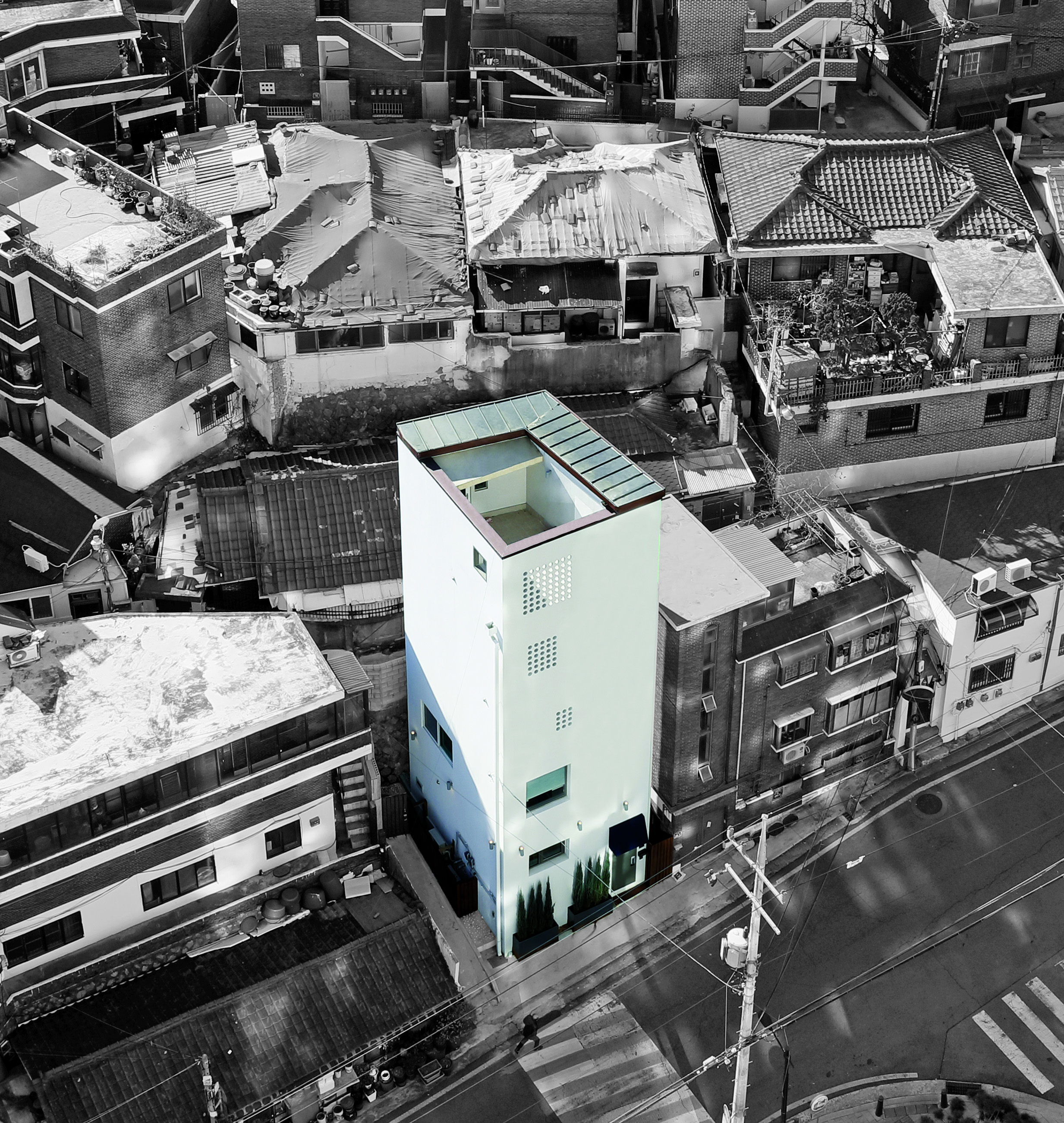 -협소한 공간에도 불구하고, 마당과 같은 외부공간을 삽입한다. 루프탑처럼 사용할 수 있도록 옥상을 계획한다.
