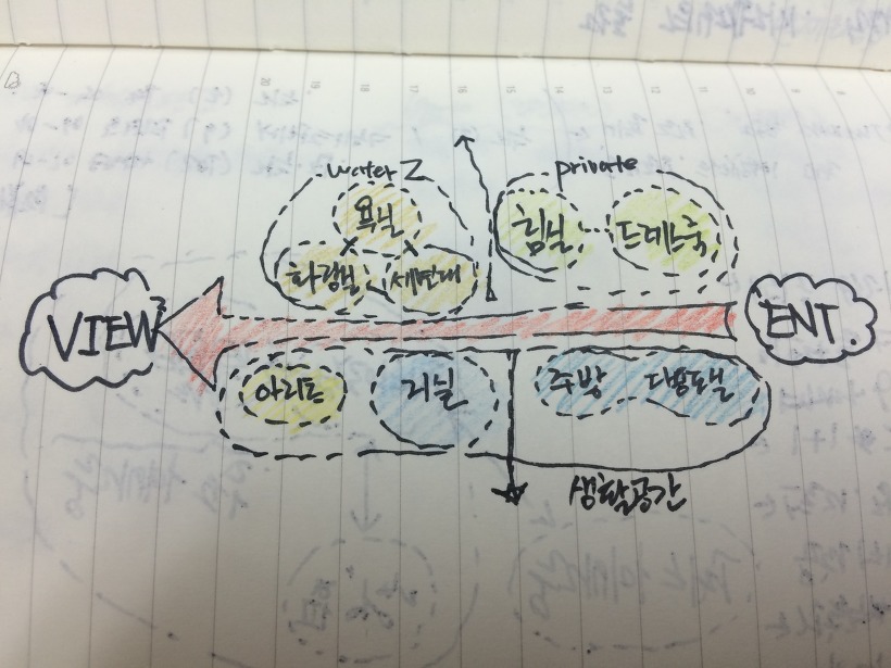 건축설계는 저에게 항상 비슷한 딜레마를 전달합니다. 욕심인지, 아니면 더 좋은 공간에 대한 기본적인 예의인지, 사전적 어휘로 정의되지 못하는 경계를 발생합니다. 생활을 바탕으로 하는 기능, 기능보다는 건축적 언어에 충실한 컨셉공간. 하나를 버려야만 취할 수 있는 제로섬게임 같지만, 궁극적으로는 하나로 귀결되는 완숙성이 아직 가 보지 않는 저를 갈등하게 합니다.