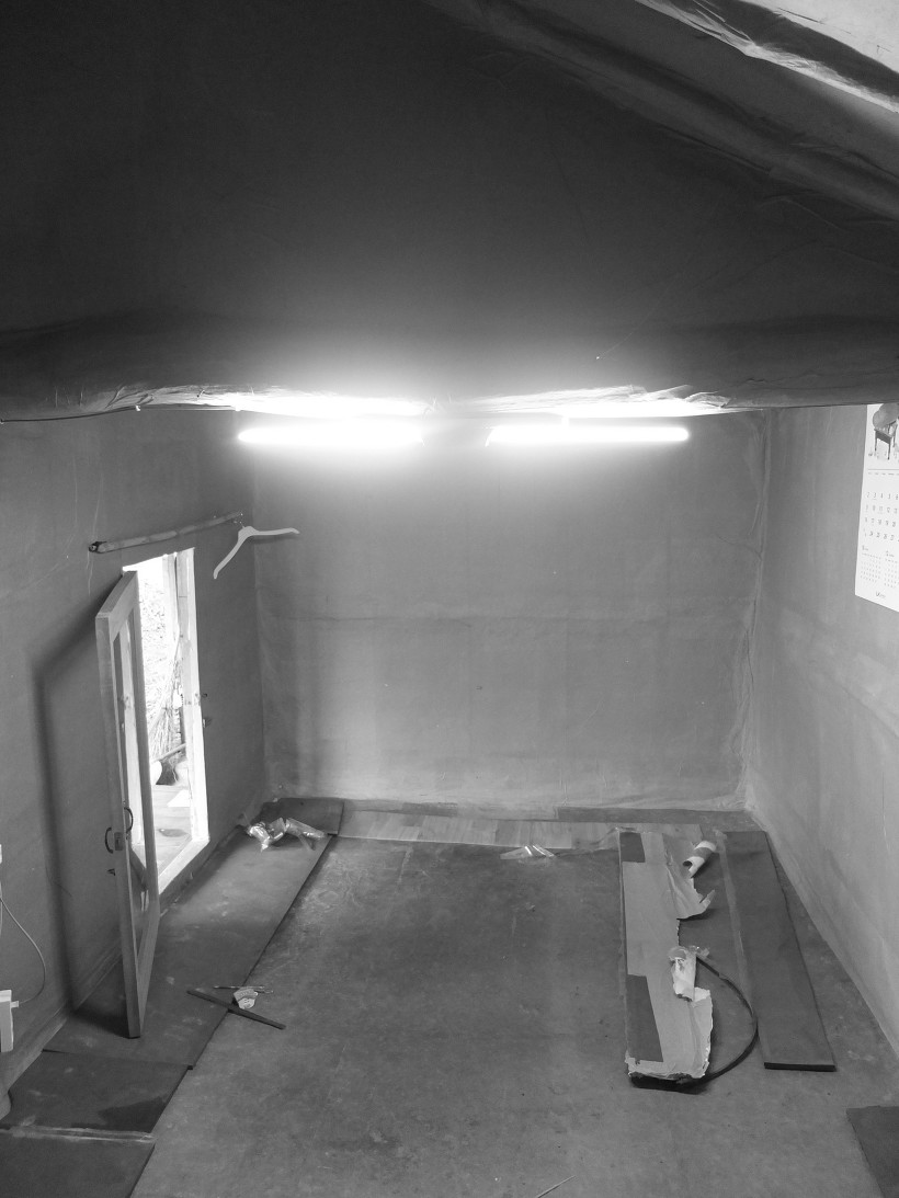 정자 아래, 소를 키웠던 헛간은 건축주를 위한 작업실로 사용하기 위해 구조보강과 시멘트블럭 벽체가 생성됩니다.