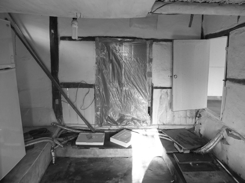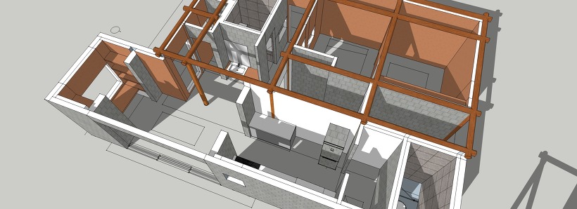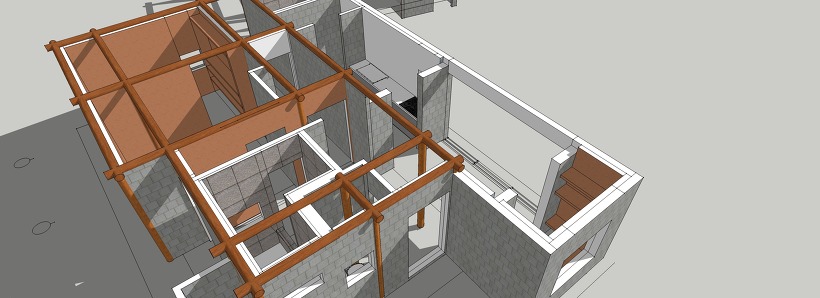 정자 아래, 소를 키웠던 헛간은 건축주를 위한 작업실로 사용하기 위해 구조보강과 시멘트블럭 벽체가 생성됩니다.
