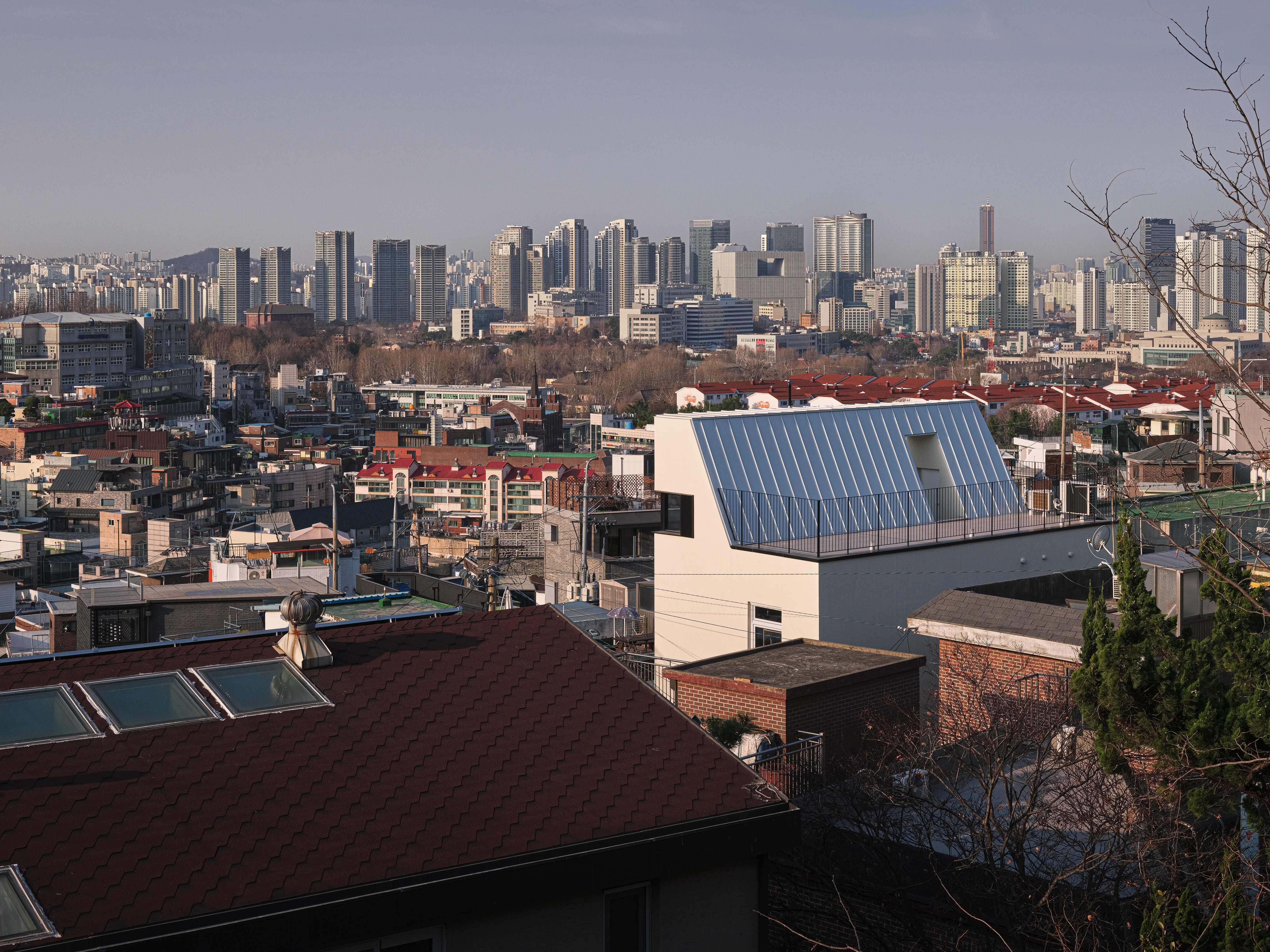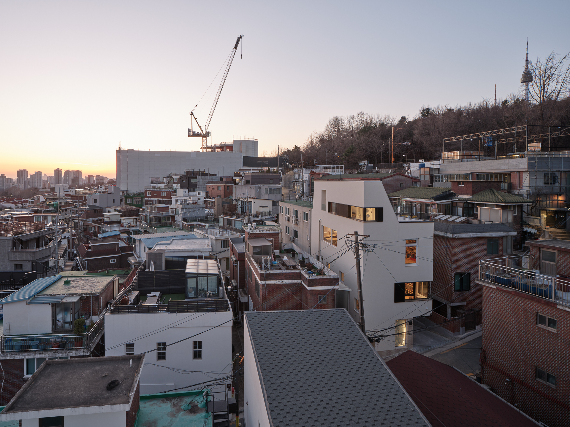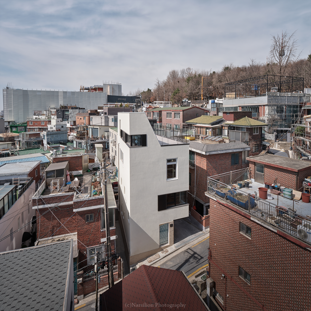건축주는 몇개의 집과 땅을 보고 지금의 집을 선택했다. 교통이 불편한 것을 감안하고 서울 한복판에 남산; 숲세권을 갖는 장소로 생각한 것이다. 5분거리에 남산산책로에 갈 수 있는 이태원에 속해 있다. 하지만 건축을 하기에 대지의 상황은 호락호락하지 않았다. 대지가 접한 유일한 동측 4미터 도로는 경사가 있는 막힌 도로이다. 건축공간의 불리함은 설계를 통해서 얼마든지 극복할 수 있다. 하지만 시공은 다른 이야기 이다. 4미터 경사도로에 펌프카를 접안하고 레미콘을 좁은 골목길에 후진으로 들어오는 공사현장은 상상하기 힘들었다. 기존 건물 철거 또한 쉽지 않은 상황이다. 대지의 이해는 건축주가 이해하는 대지에서 시작한다. 다행이도 건축주의 이해가 우리만큼 좋았다. 대지를 계약했을때 보지 못했던 점들을 우리를 통해서 새롭게 이해하기 시작했다. 그 호흡 덕분에 지금의 글을 쓴다.
