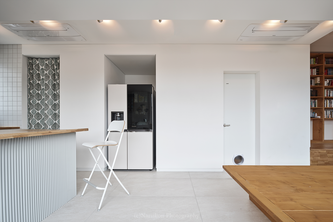 40대 중후반 나이의 부부 두명이 거주한다. 재택근무와 출근을 번갈아 하며 유연하게 근무를 한다. 고양이 두마리도 함께 산다. 차분한 성격의 아내와 달리 쾌활한 남편은 다양한 취미생활을 즐긴다. 따로의 시간과 함께의 시간을 배분할 수 있는 공간이 필요하다. 재택근무를 하는 아내와 뒹굴뒹굴 책을 보는 남편이 함께 거주한다. 음악을 듣는 아내와 목공취미를 즐기는 남편의 모습 또한 그릴 수 있다. 따로의 시간 뿐만 아니라 텔레비젼을 보면서 와인을 함께 마시는 시간도 필요하다. 밥을 먹으며 오늘 하루를 정리하는 식탁도 필요하다. 평범함 속에 고유한 두명의 생활방식을 담는 거주공간을 제안한다.