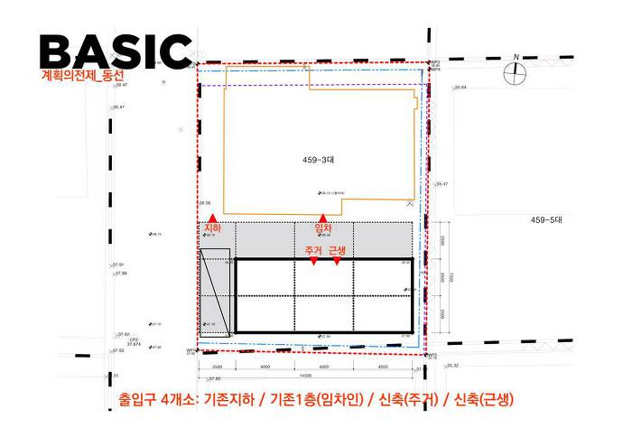 2. 기본 모듈을 서측으로 최대한 위치 시킵니다. 지하 선큰을 동측 3개 모듈로 적용, 지하환경을 최대한 개선합니다. 대신 1층 전면(서측)주차공간과 지하공간에 자리를 내어준 만큼 최소화 계획입니다.